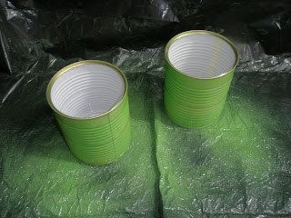 Pintei as latas por fora com spray verde...